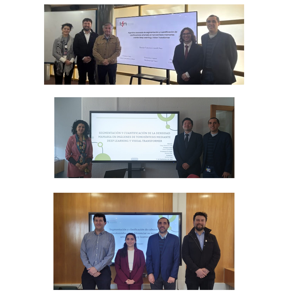 We proudly have accompanied three Electrical Civil Engineering students in defending their undergraduate theses. Together with Professor Denisse Karl Sáez, Professor Víctor Castañeda, and Professor Carlos Navarro Clavería, who participated in the evaluation committees after a whole semester of meetings and collaborative work, we reaffirm our commitment to applied research and the training of future professionals capable of bridging technology and healthcare.